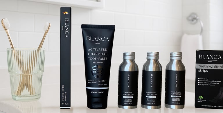 At Blanca, we believe in the power of a confident smile. Our products are designed to deliver real results. Fast, safe, and effective. Whether it’s whitening strips, gum care, or foam cleansers, each formula is crafted with premium ingredients for visible transformation and gentle care.